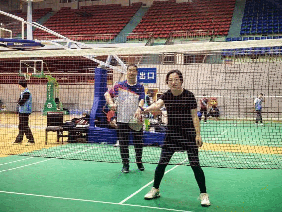 本次比赛以“运动同心,发展同行”为主题,比赛形式为羽毛球趣味单项赛,采用第一阶段分组循环、第二阶段淘汰赛的赛制,全程均以双打形式进行、60分封顶的赛规搭配动态轮换队员的模式,摒弃传统竞技的紧张感,融入趣味规则设计,让赛场充满欢声笑语。赛前,参赛老师们严格遵循“安全第一、友谊第二、成绩第三”的原则,认真做好热身运动,压腿、挥拍、慢跑,确保以最佳状态投入比赛;学生裁判团队提前20分钟到场,细致检查场地、调试器材,用课余时间为赛事保驾护航,老师们全程尊重裁判裁定,尽显文明参赛风范。
