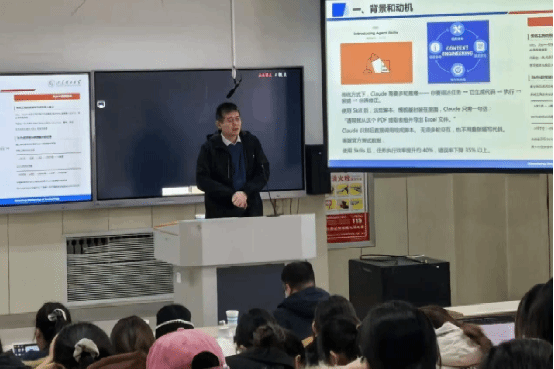 在交流环节,与会师生围绕AI伦理规范、技术识别实践方法等话题踊跃提问,白如江教授结合自身研究经验与国际前沿动态给予了细致深入的解答。